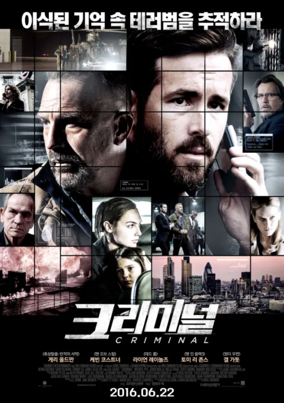 2016년 개봉한 영화 '크리미널(Criminal)'은 아리엘 브로멘 감독이 메가폰을 잡고, 할리우드의 내로라하는 명배우들이 총출동하여 화제를 모았던 작품이다. 케빈 코스트너, 게리 올드만, 토미 리 존스 등 이름만 들어도 묵직한 존재감을 자랑하는 레전드 배우들이 1991년 영화 'JFK' 이후 무려 25년 만에 한 작품에서 조우했다는 사실만으로도 영화 팬들의 가슴을 설레게 하기에 충분했다. 여기에 '데드풀'로 전성기를 맞이한 라이언 레이놀즈와 '원더우먼' 갤 가돗까지 가세하며 신구 조화가 완벽한 초호화 캐스팅 라인업을 완성했다.